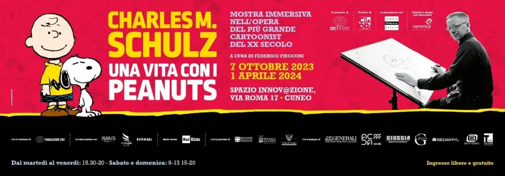 A Cuneo, un viaggio immersivo nel mondo di Charles M. Schulz ha portato i visitatori alla scoperta della vita e dell’arte del creatore dei Peanuts, attraverso un percorso interattivo e coinvolgente. Centrica ha curato l’exhibition design e l’experience per questa straordinaria mostra, realizzata da Fondazione CRC e CRC Innova, in collaborazione con l’Associazione Culturale Cuadri. Curata da Federico Fiecconi, l’esposizione ha offerto anche uno spazio ludico e interattivo per i più piccoli, basato sulla ArtCentrica Platform. Dal 7 ottobre 2023 al 1° aprile 2024, lo Spazio Incontri di Fondazione CRC ha accolto il pubblico con visite guidate dedicate alle scuole, offrendo un’esperienza unica per rivivere la magia senza tempo dei Peanuts.